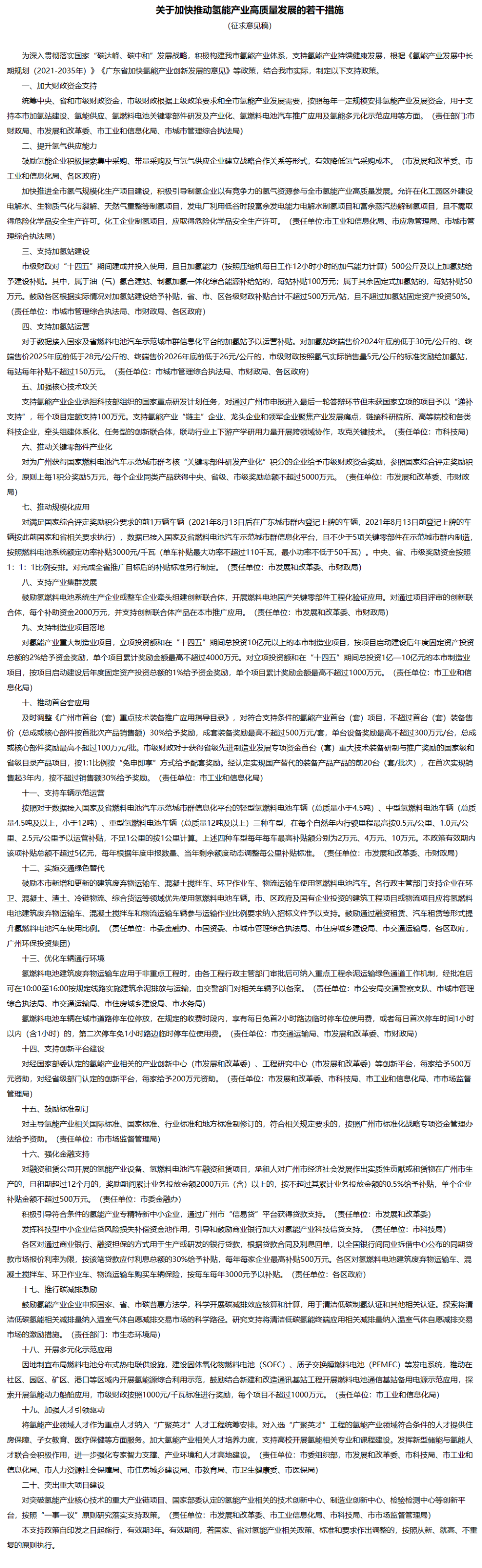 将氢能产业领域人才作为重点人才纳入“广聚英才”人才工程统筹安排。对入选“广聚英才”工程的氢能产业领域符合条件的人才提供住房保障、子女教育、医疗保健等方面服务。加大氢能产业相关人才培养力度,支持高校开展氢能相关专业和课程建设。发挥新型储能与氢能人才联合会积极作用,进一步强化专家智力支撑、产业环境和人才高地建设。